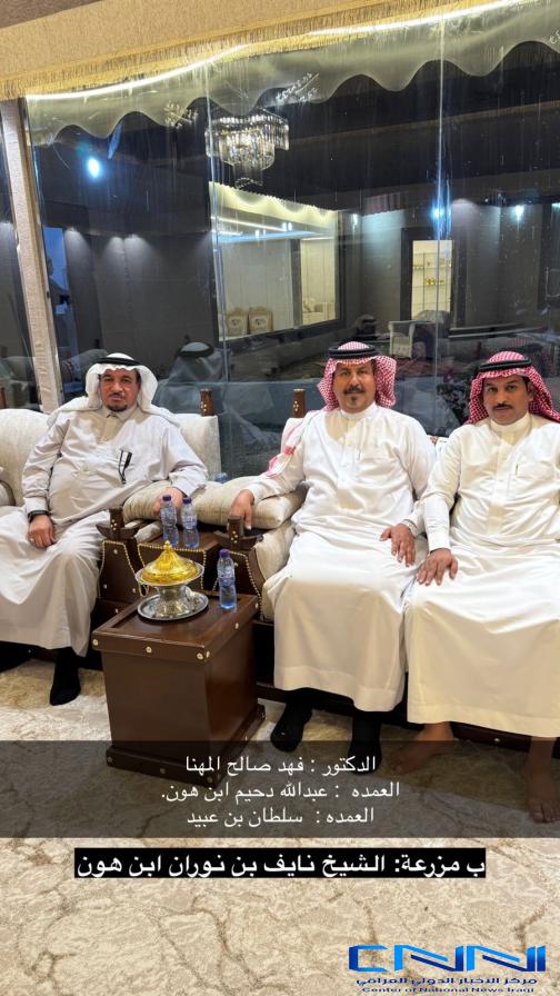 وبحضور رجل الأعمال سالم عوض الرشيدي، والعمدة عبد الله بن دحيم هون الرشيدي، والعمدة سلطان عبيد الرشيدي، ورجل الأعمال نواف صالح الرشيدي ورجل الأعمال قالط الذيابي الرشيدي، والأستاذ عدنان الرشيدي، ورجل الأعمال خالد مكاشر، والأستاذ نادر نايف الرشيدي، والمأذون الشرعي عبيد سليم الرشيدي والعديد من الشخصيات الأخرى من أهل المدينة المنورة