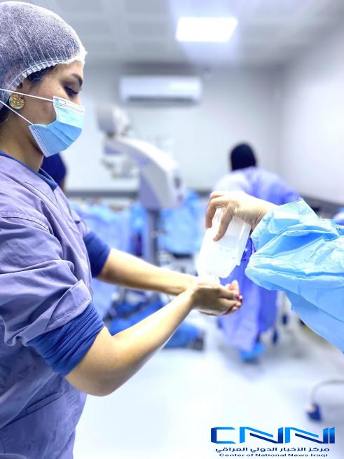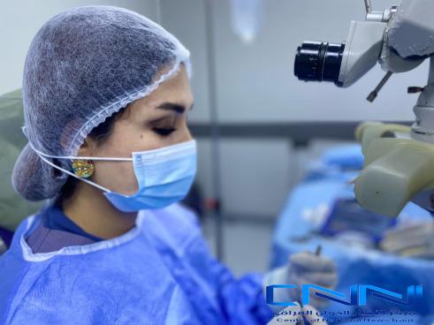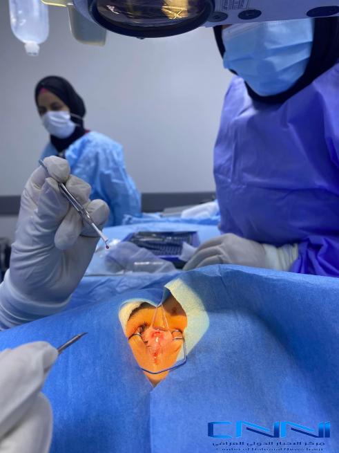 فريق طبي برئاسة اخصائية العيون الدكتورة زهراء عبدالله عبد الشكور يجري عملية طارئة لطفل في قسىم الجراحة/شُعبة العيون..